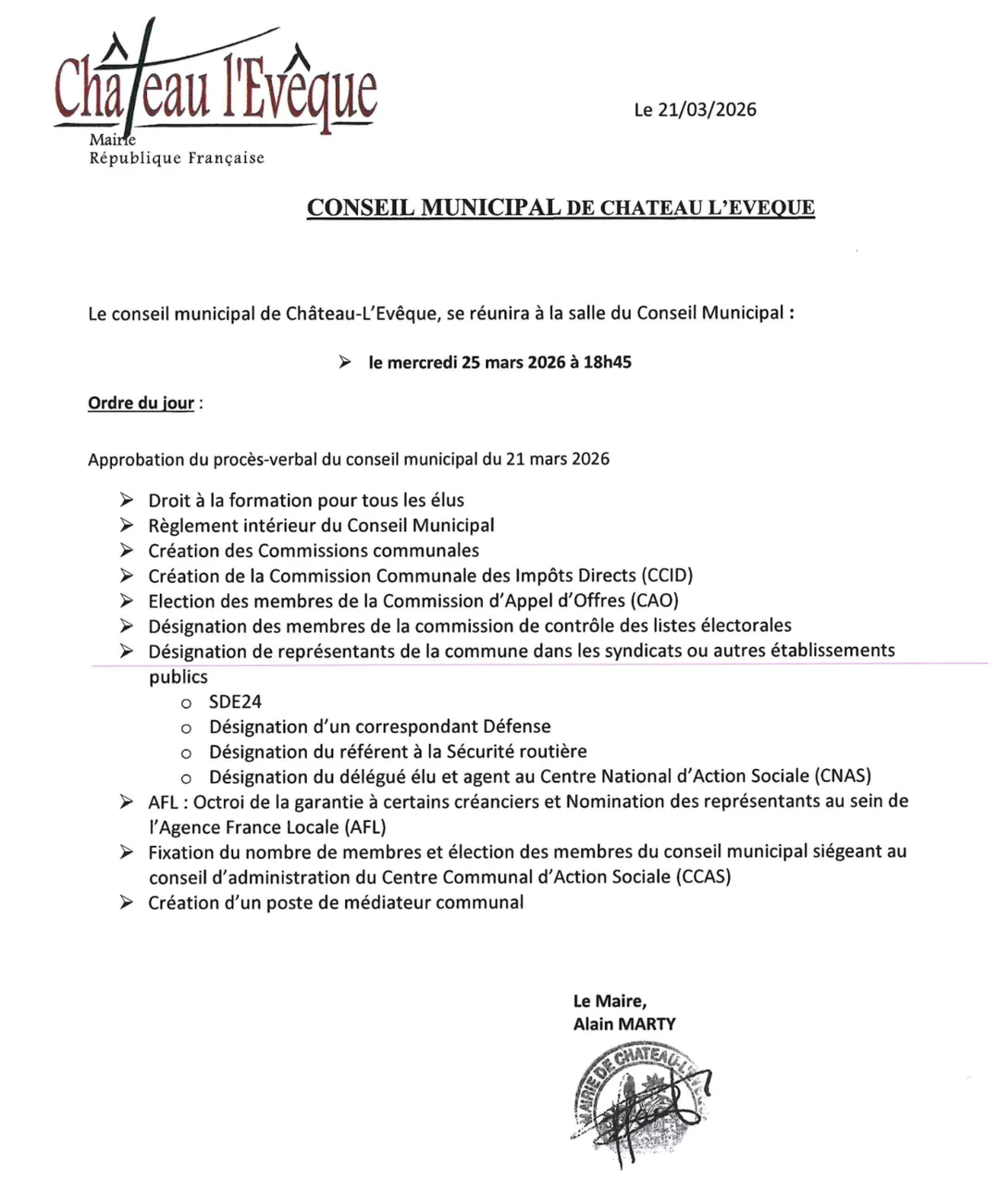 L'AGENDA DU MAIRE